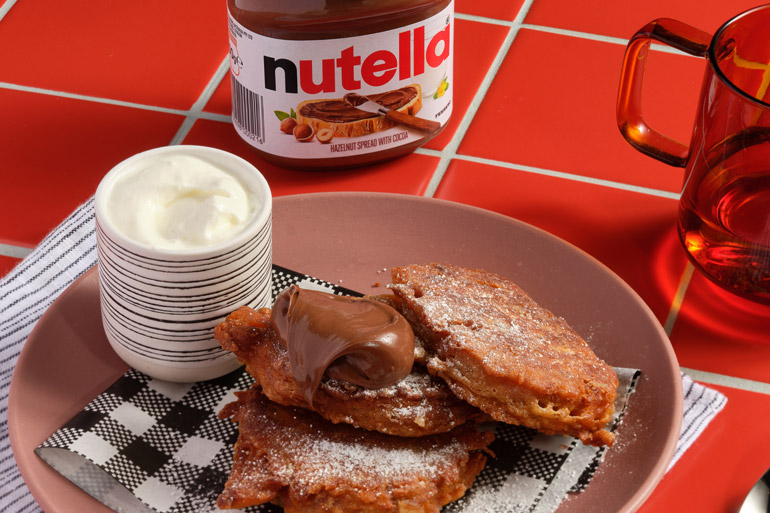 A warm, autumnal, spiced twist on a fan-favourite breakfast option. These golden, delicious fritters are topped with the iconic choc-hazelnut goodness of Nutella are the ultimate Easter-flavoured treat.